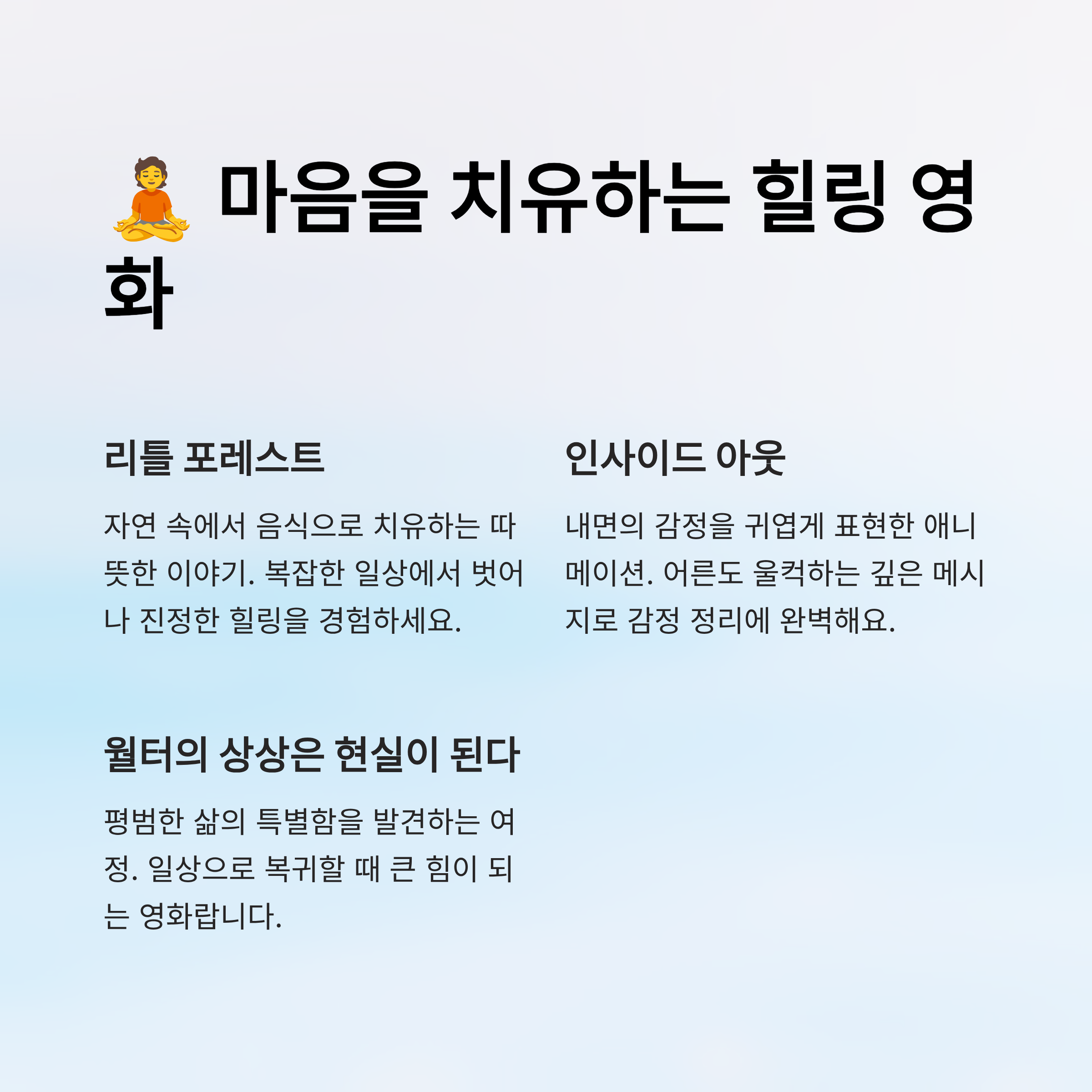 🧘 힐링이 필요한 당신을 위한 영화
