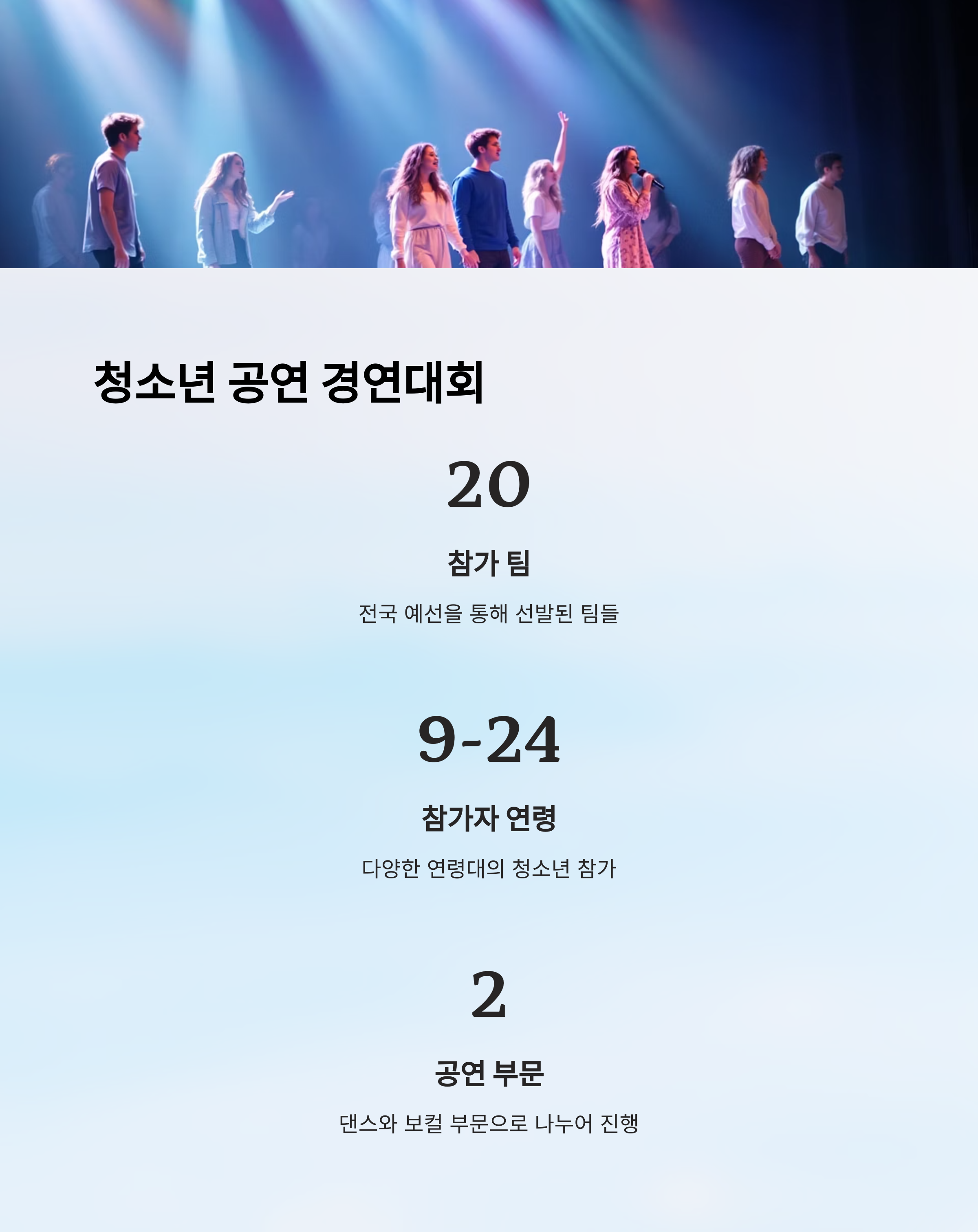이 대회는 단순한 경연이 아니라, 청소년의 개성과 재능을 발산하는 기회이자, 관객과 함께 호흡하는 무대라는 점에서 더욱 의미 있어요. 참가자들은 음악, 춤, 퍼포먼스를 통해 자신만의 이야기를 전하죠.