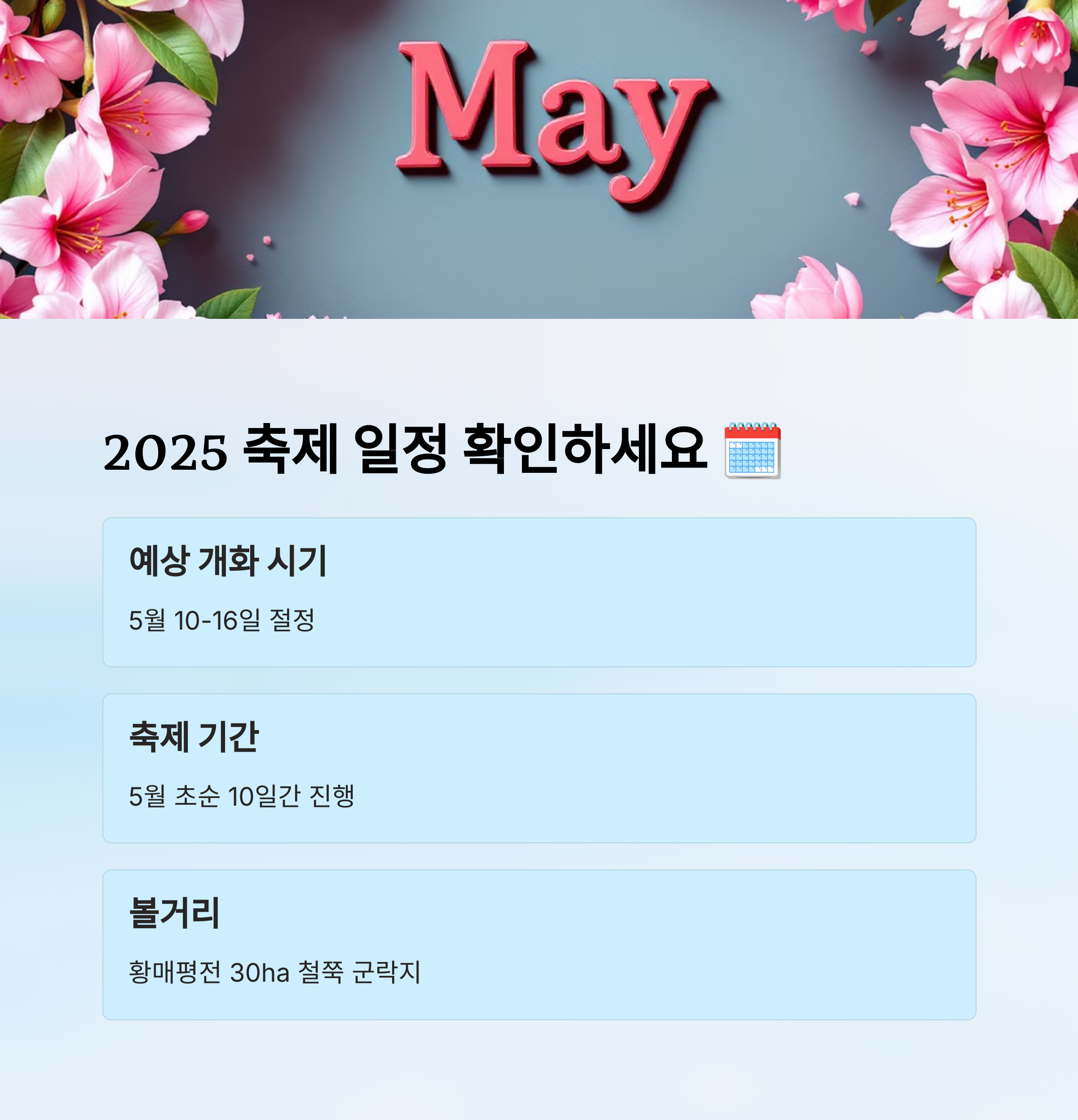 | 2025 금산 보곡산골 산벚꽃 축제 완벽 가이드 (1) | 2025.04.16 |