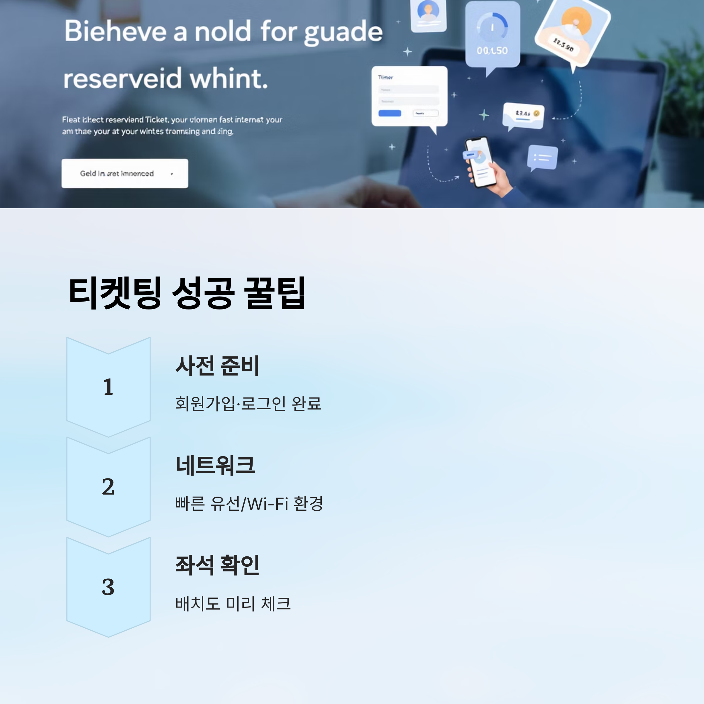 예매 오픈 시간에는 모바일과 PC를 동시에 띄우고 대기하세요. 인터넷 속도가 빠른 환경에서 접속하는 것도 티켓팅 성공 확률을 높이는 방법이랍니다. 🔥