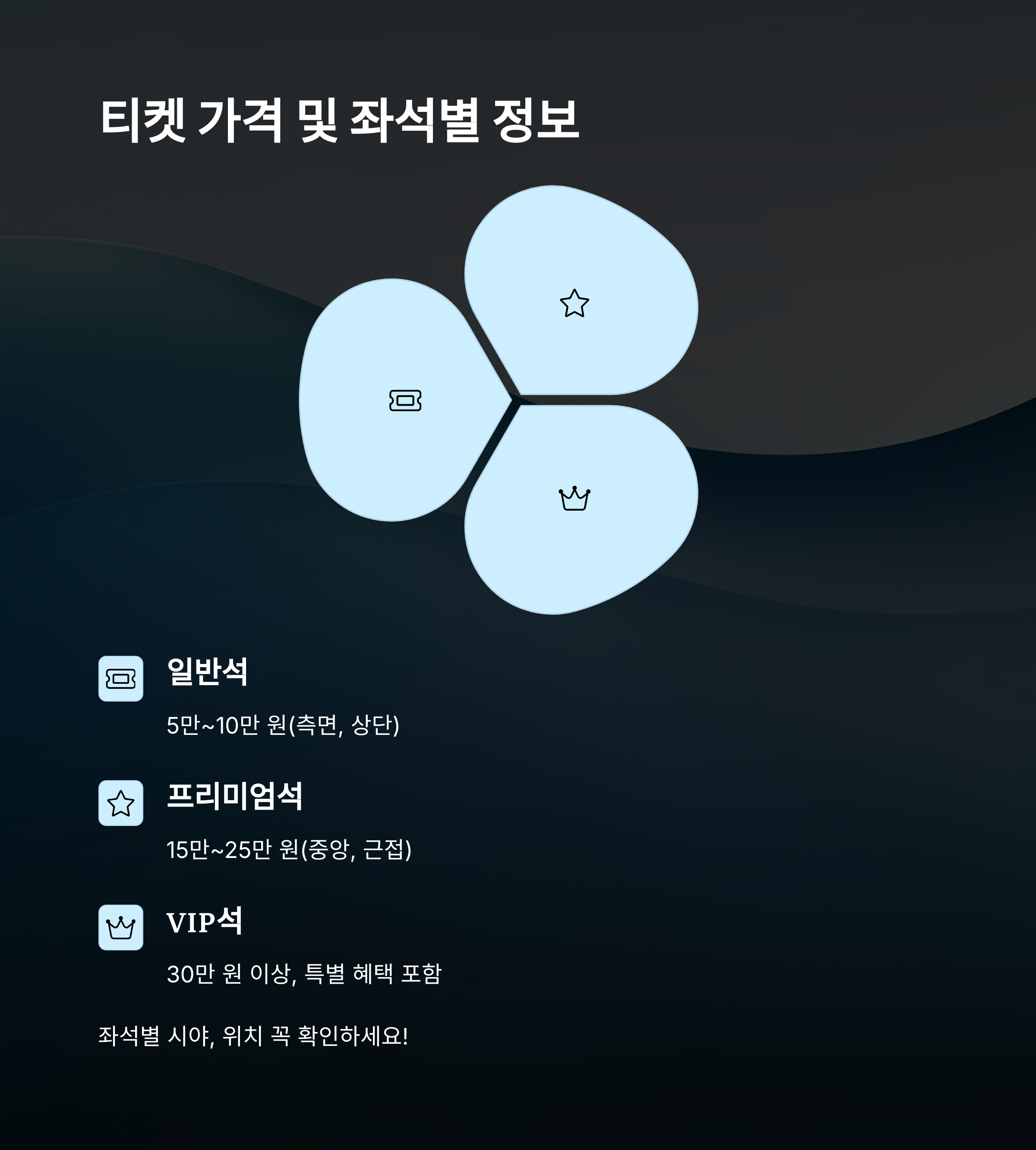 티켓 가격은 좌석별로 꽤 차이가 있어요. 🎟️ 예상 가격은 다음과 같아요: