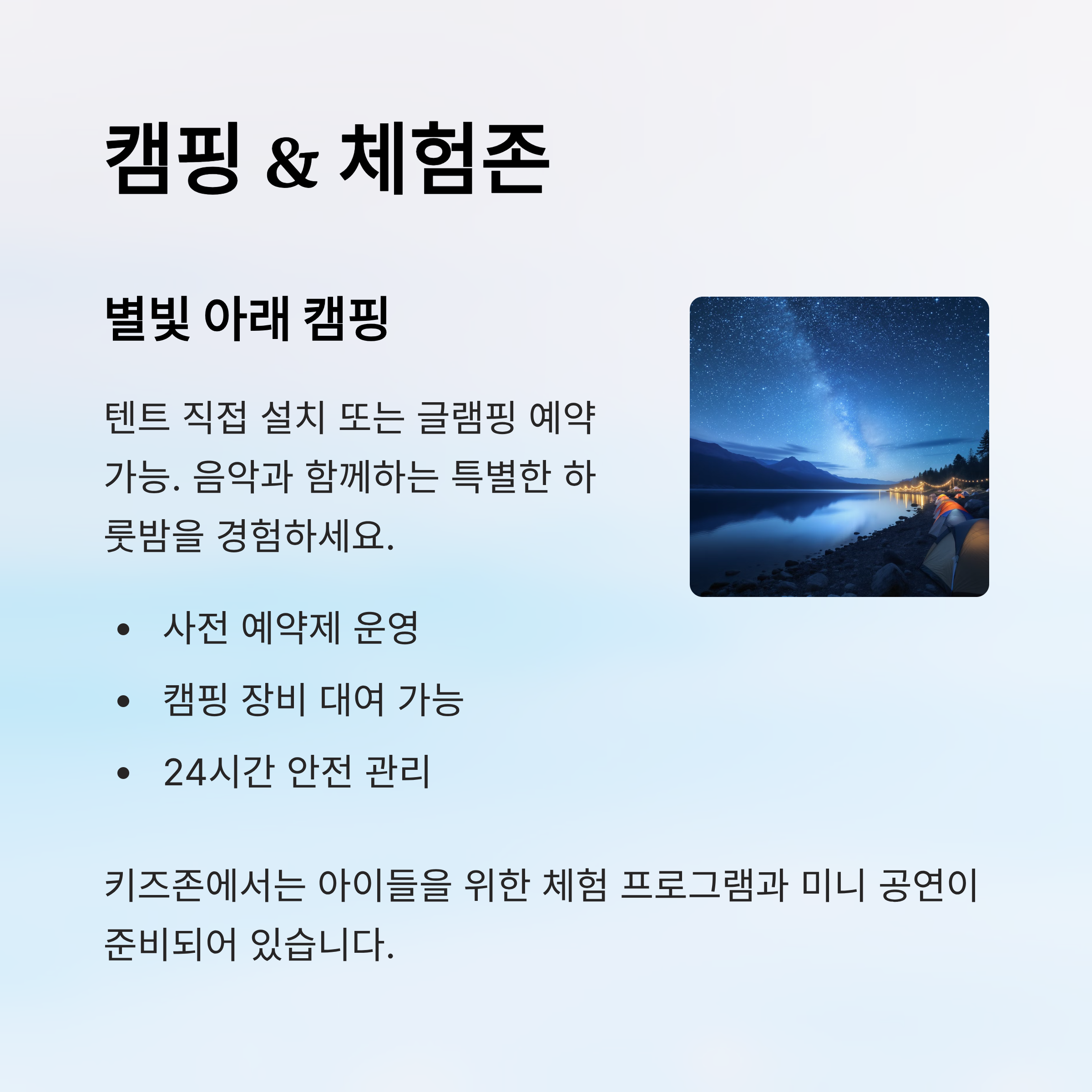 캠핑존 텐트·글램핑 선택 가능 사전 예약 필수