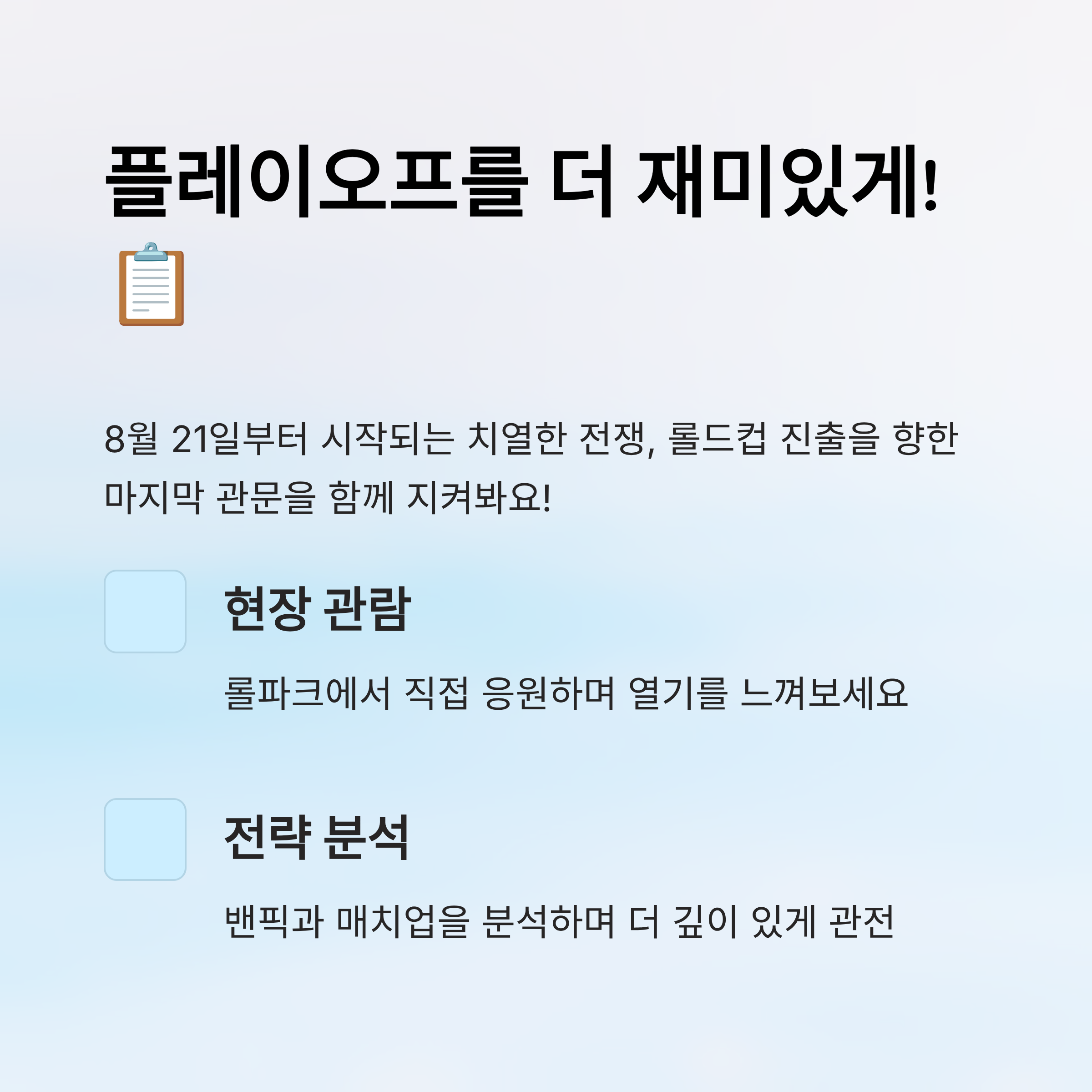 마지막으로 중요한 건 팬들의 열기예요. 매 경기마다 팬들의 응원이 경기력에도 영향을 줄 정도로 크기 때문에, 현장 분위기도 플레이오프의 또 다른 재미 요소 중 하나예요.