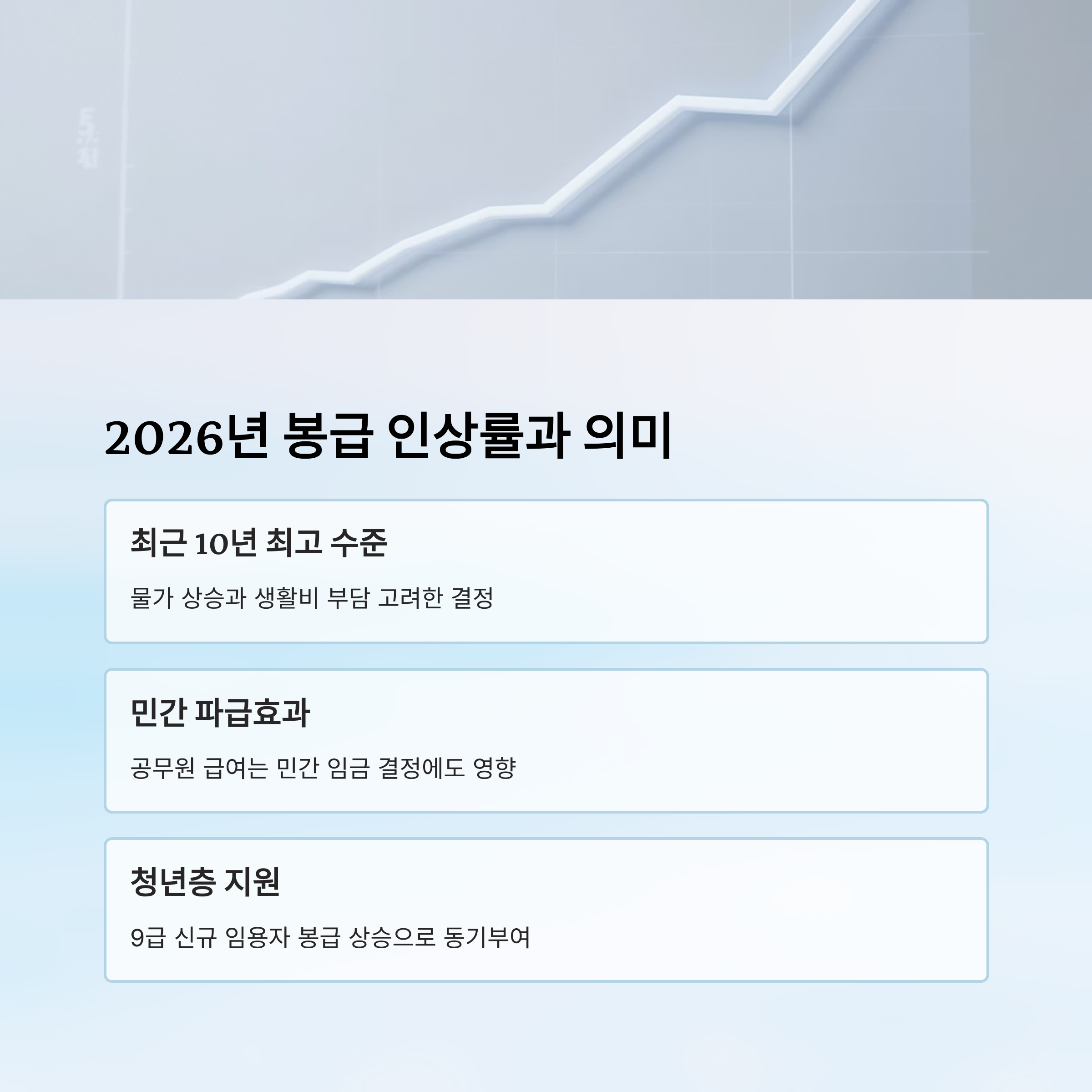 공무원 봉급은 매년 정부 예산안에 따라 조정되는데, 물가 상승률과 경기 상황이 반영돼요. 이번 2026년 인상률은 물가 안정과 공무원의 생활 보장을 동시에 고려한 결과라고 볼 수 있어요. 제가 생각했을 때 이번 인상은 청년층의 공직 지원에도 긍정적인 영향을 줄 것 같아요.