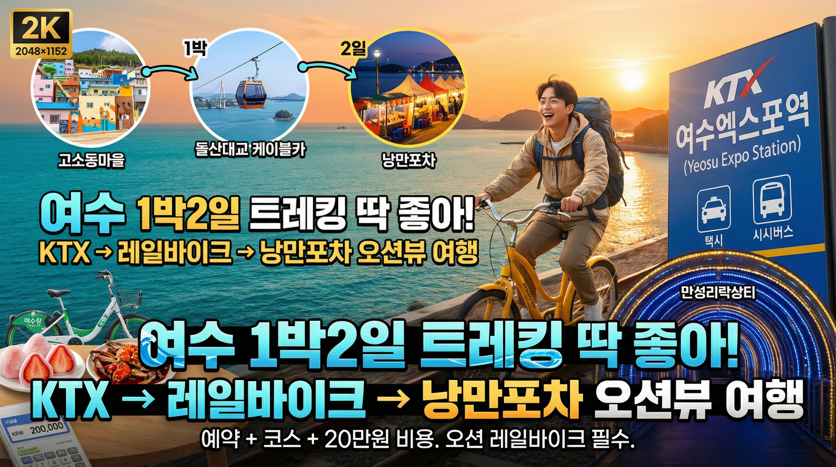 안녕하세요! 여러분, 혹시 갑자기 바다가 보고 싶어지는 그런 날 없으신가요? 😊 저도 얼마 전 문득 푸른 남해 바다가 그리워져서 계획 없이 KTX를 예매했답니다. 사실 운전을 못 하는 '뚜벅이'라 걱정도 많았지만, 2026년의 여수는 대중교통과 인프라가 너무 잘 되어 있어서 혼자서도, 혹은 친구와도 충분히 낭만적인 여행이 가능하더라고요. 특히 바다 위를 달리는 듯한 해양 레일바이크는 이번 여행의 하이라이트였는데요! 제가 직접 다녀오며 느꼈던 생생한 후기와 동선을 지금부터 아낌없이 공유해 드릴게요. 자, 여수 밤바다의 설렘 속으로 함께 떠나볼까요? 🌊