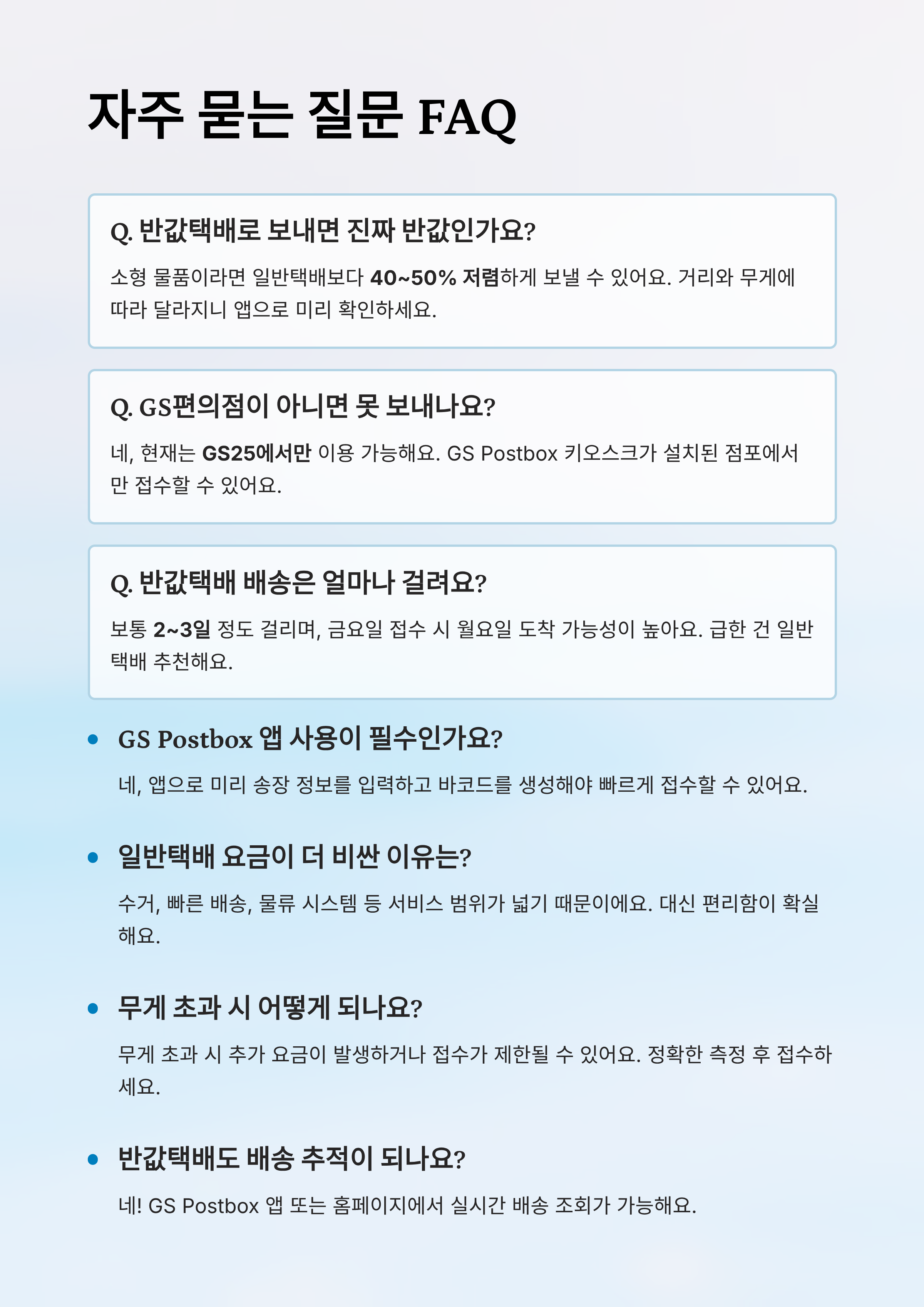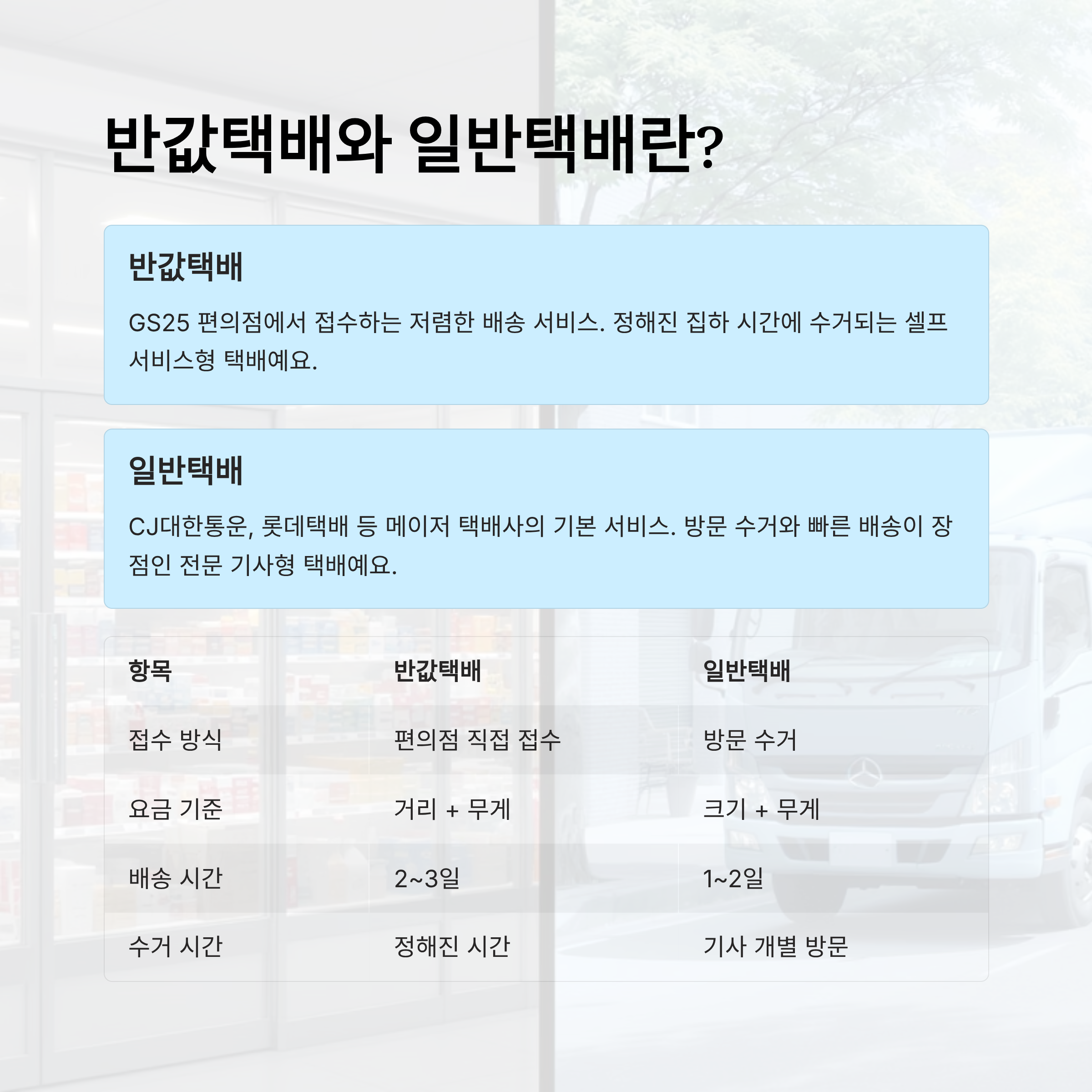 | 항목 | 반값택배 (GS25) | 일반택배 |