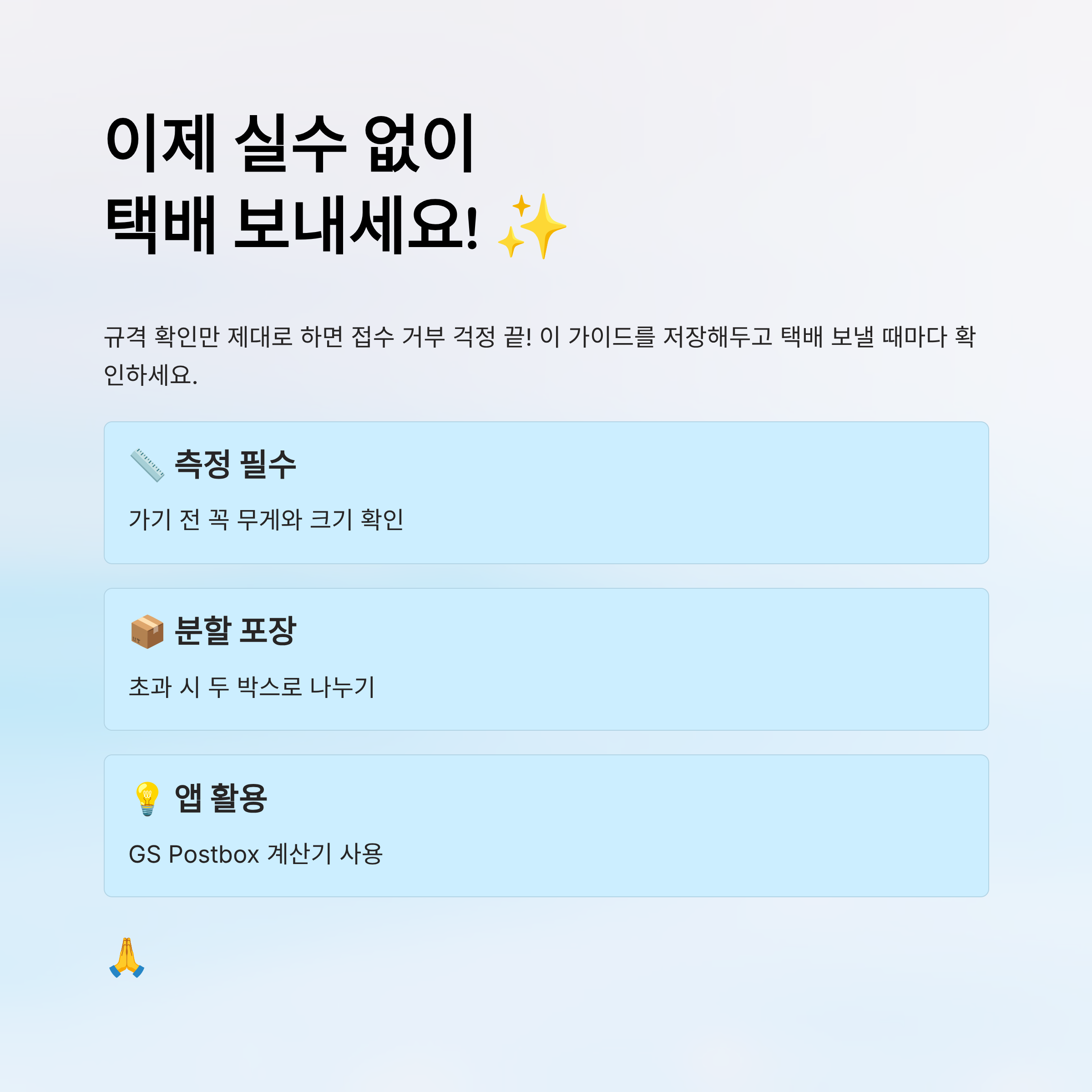 📌 안내드립니다: 본 포스팅 내용은 2025년 10월 기준으로 작성되었으며, 택배사 정책 변경 시 일부 내용이 달라질 수 있어요. 정확한 최신 정보는 GS Postbox 공식 홈페이지를 확인해주세요.