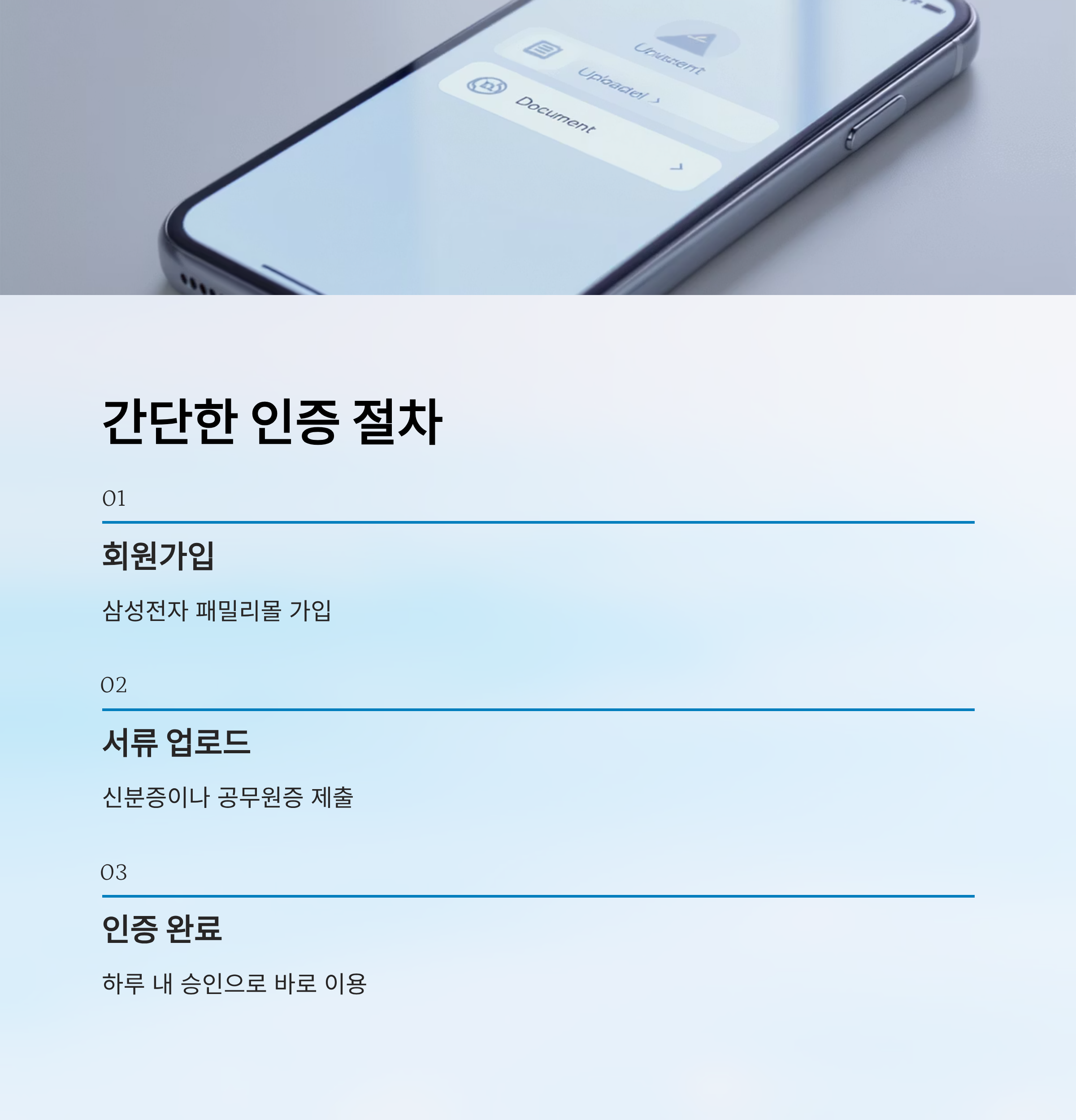 자격 인증 방법도 간단해요. 삼성전자 패밀리몰 웹사이트에 회원가입을 한 후, 신분증이나 공무원증 등 소속을 증명할 수 있는 서류를 업로드하면 자격 인증이 완료돼요. 한 번만 인증하면 행사 내내 자유롭게 할인된 제품을 볼 수 있어요.