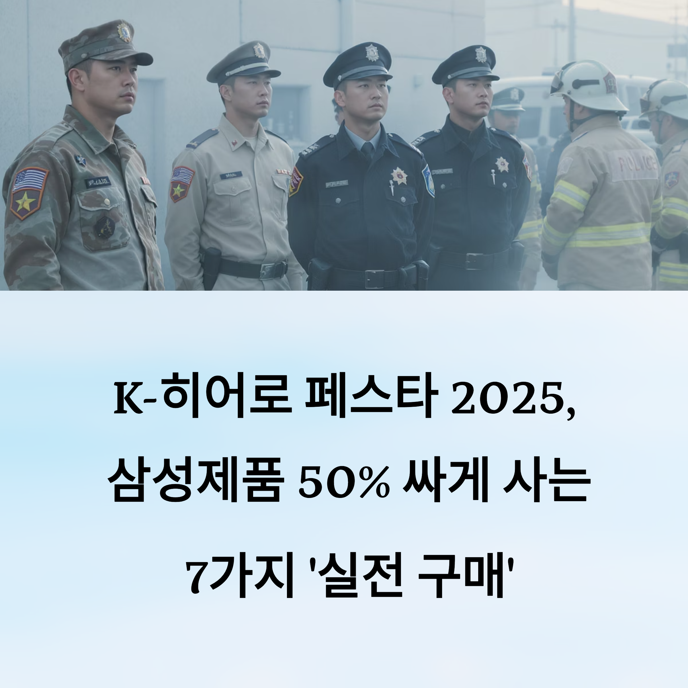 삼성전자는 2024년에 이어 2025년에도 국가 안보와 국민 안전을 위해 헌신하는 이들을 대상으로 한 감사 프로모션을 진행해요. 이름하여 ‘K-히어로 페스타’! 💙